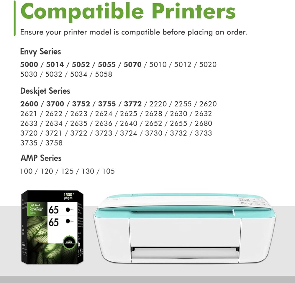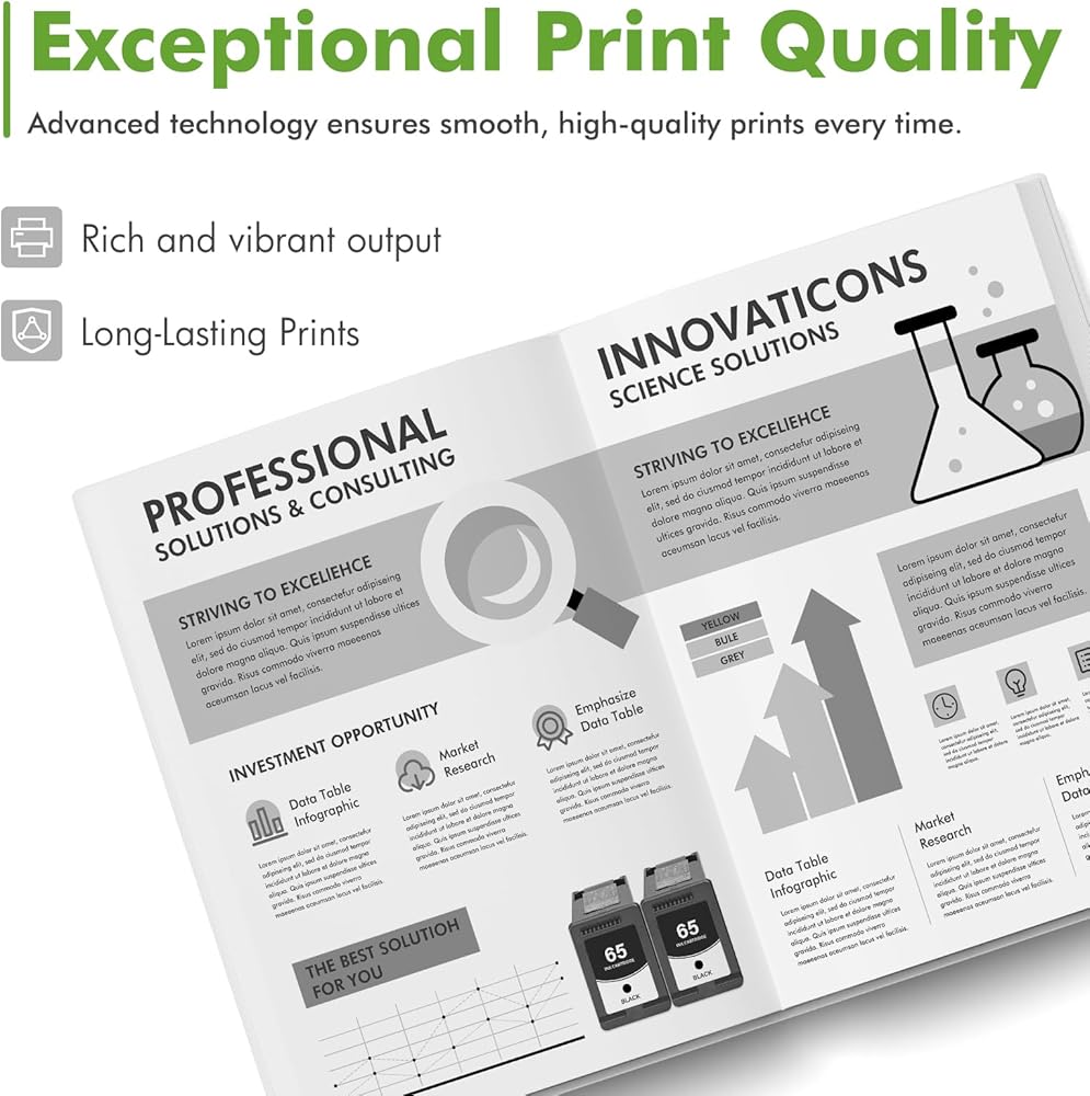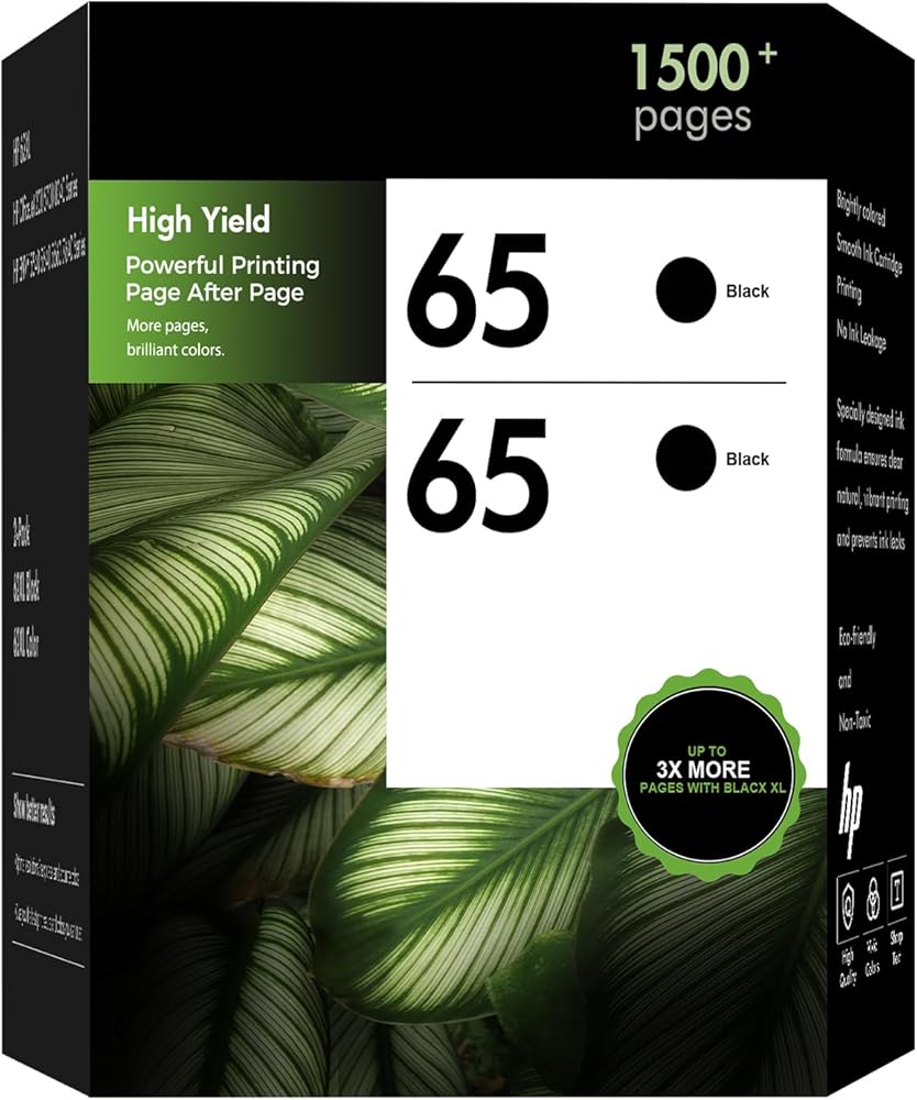 High Page Yield: Up to 750 pages for each 65xl 65 black ink (Letter/A4, at 5% coverage)