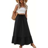 Features: High waisted maxi skirts, boho long skirts, drawstring elastic waist cute skirts, tiered ruffle hem, practical pockets on both sides deep enough to hold your cell phone, wallet, keys, and more.