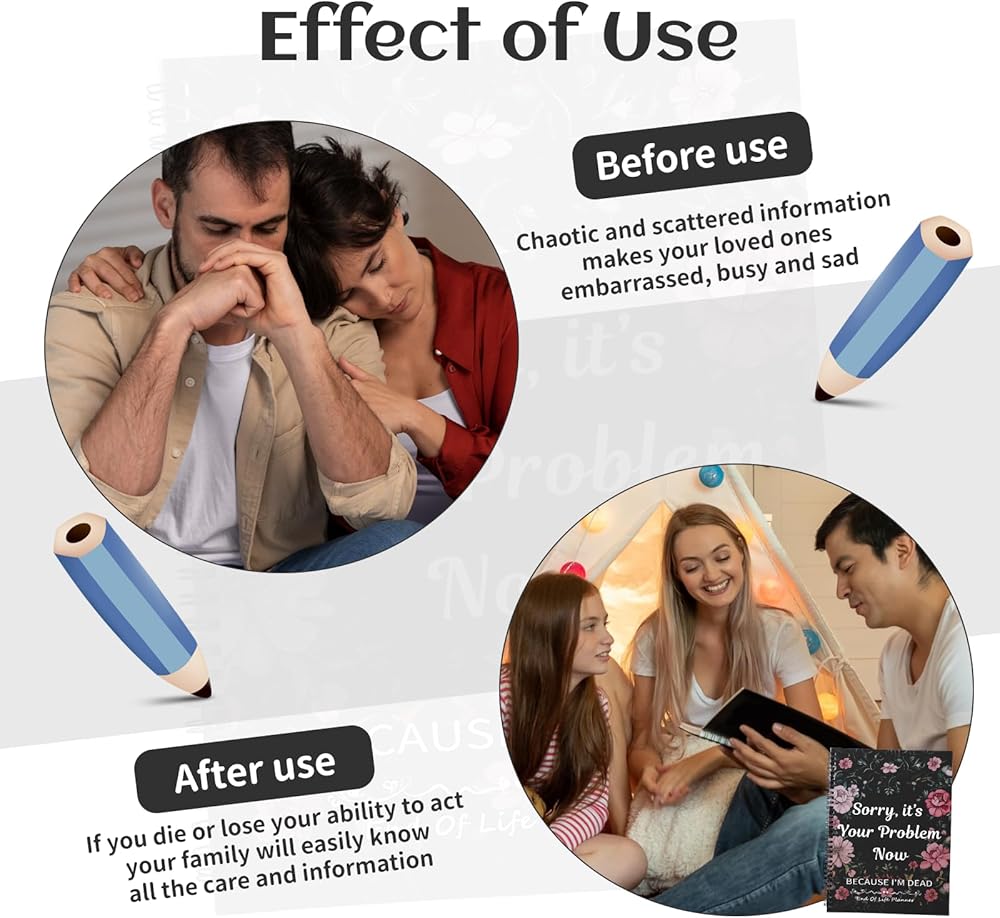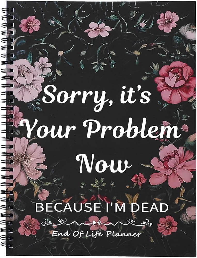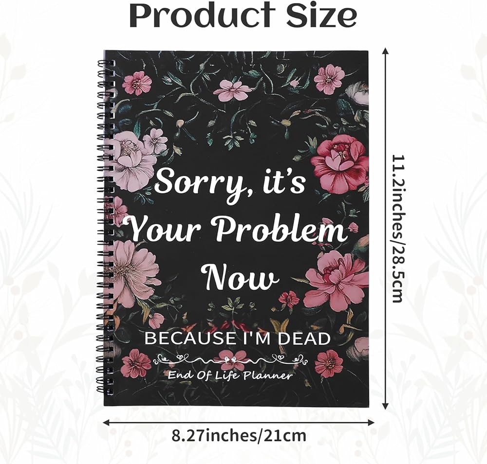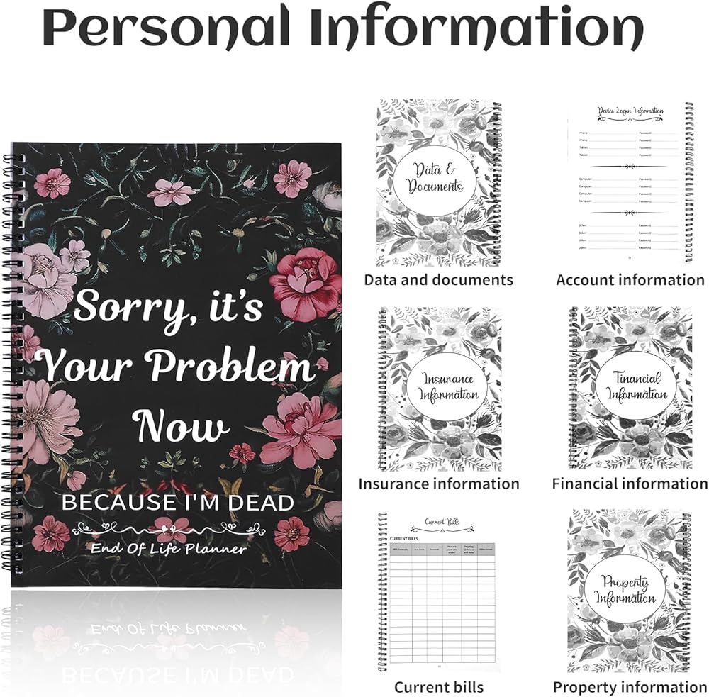 Humorous Guided End-of-Life Planning:Our end of life planner funny titled "Sorry It's Your Problem Now Because I'm Dead" eases tough conversations with humor. This estate planning organizer covers finances, wishes, and important details in clear, categorized sections