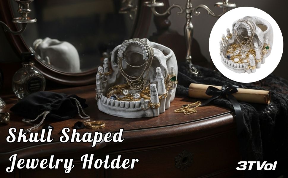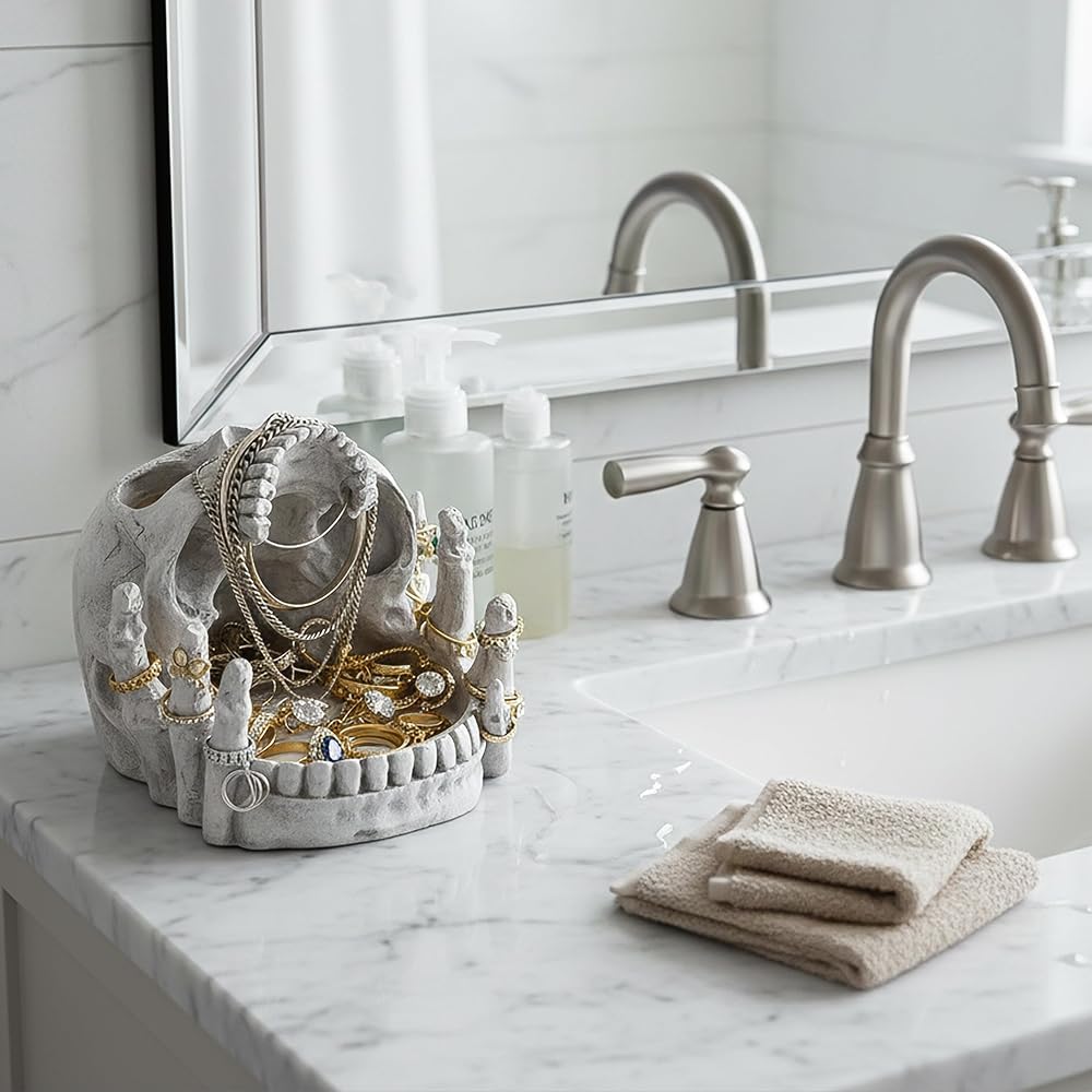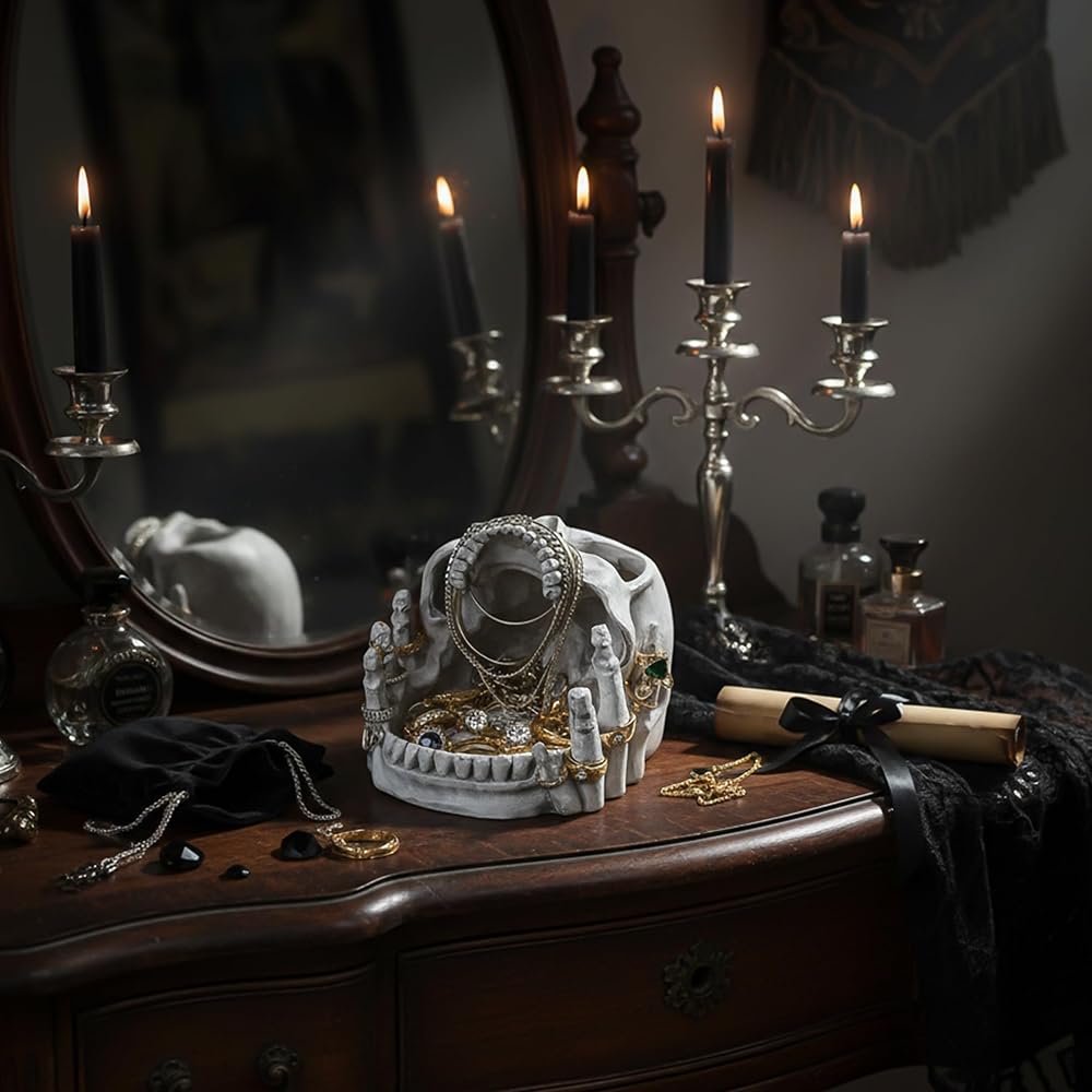 Stylish Jewelry & Accessories Display: Designed as a skull jewelry and jewellery holder for women, it keeps rings, earrings, and charm jewellery neat and visible while adding white, antique, or gold tones to your dark aesthetic setup.