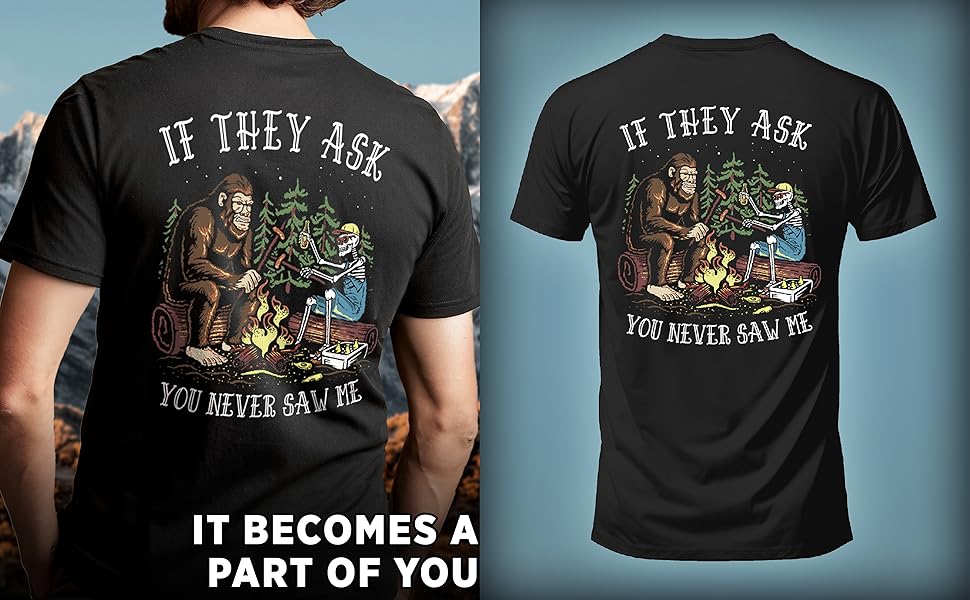 Great Gift for Campers and Bigfoot Fans –Funny and stylish graphic tee for men who enjoy camping, hiking, and the outdoors—perfect for birthdays, Father's Day, bonfire nights, or summer adventures.