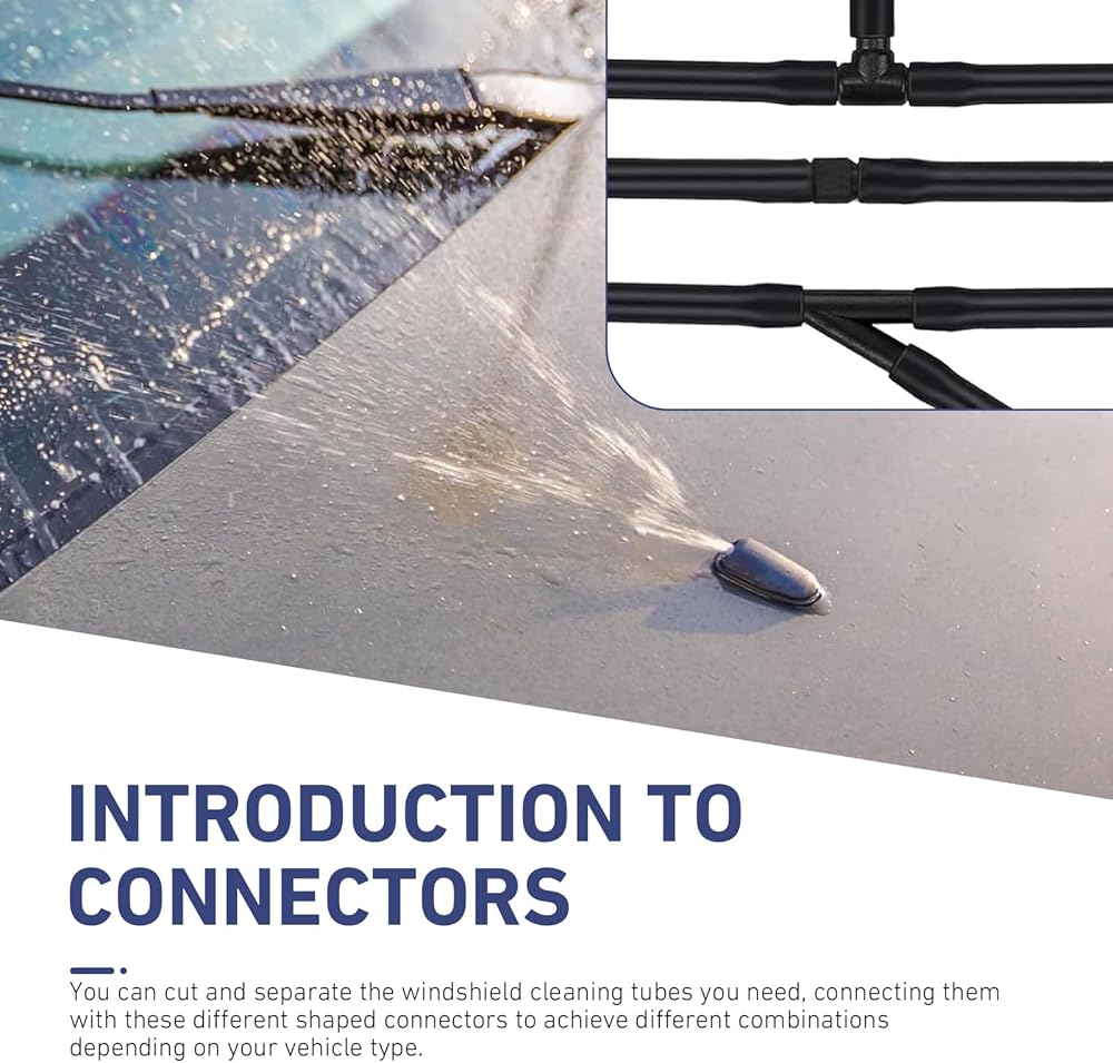 Leak-proof Sealing: Each joint in the windshield washer hose kit features reinforced sealing design, ensuring a tight fit with pipe connections to prevent leaks. The premium hose operates smoothly without clogging, guaranteeing consistent water flow throughout the spraying process for reliable cleaning performance.