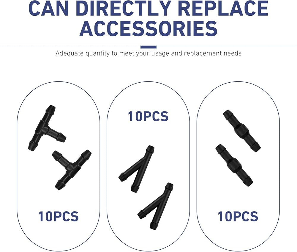 Complete Mounting Kit with Multiple Connectors: This car windshield washer hose kit includes T-type, Y-type, and I-type hose connectors to fit different tubing setups. The kit simplifies installation and is ideal for repairing or extending existing washer fluid lines.