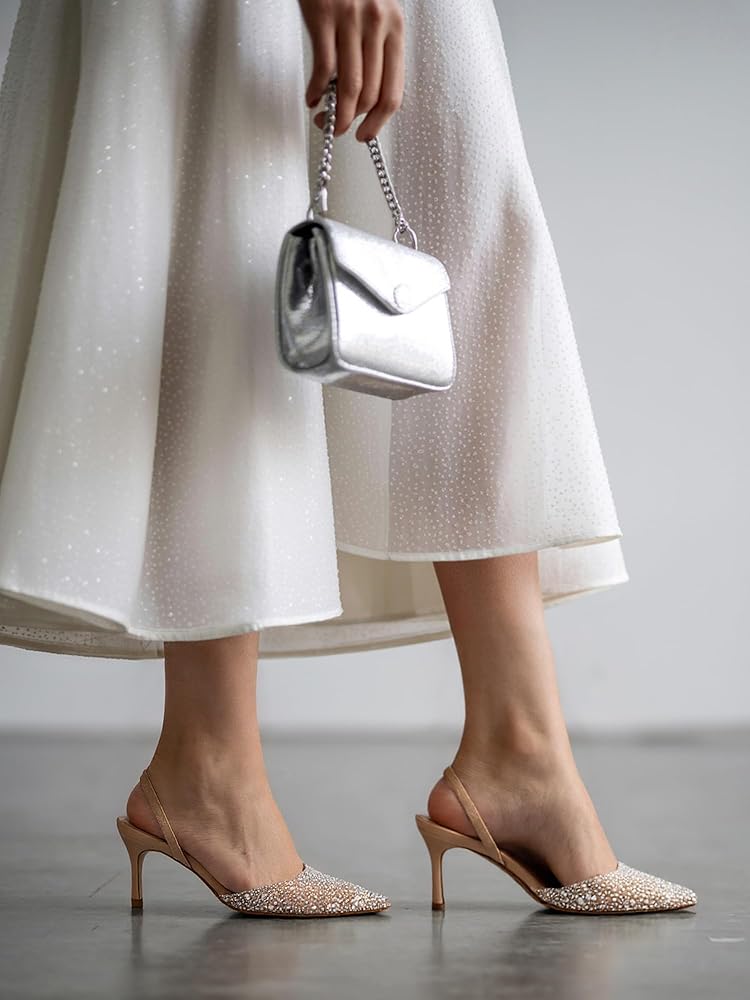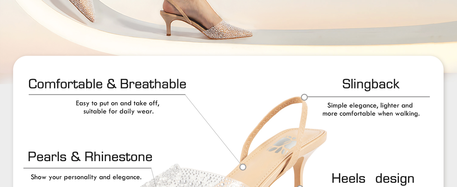 【تصميم كلاسيكي】: يؤكد الجزء الخلفي الكلاسيكي والمقدمة المدببة على الأناقة الأنثوية. تعمل أحجار الراين اللامعة واللؤلؤ في الجزء العلوي على تعزيز المظهر البصري وإضافة تفاصيل مزخرفة إلى التصميم البسيط.