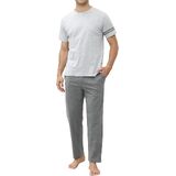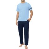Classic Long Pyjamas for Men: This set includes a solid-colored short-sleeve crew neck top with a stylish cross-texture design, paired with long pajama bottoms featuring two practical side pockets. The timeless look is not only fashionable but also ensures maximum comfort for relaxing at home.
