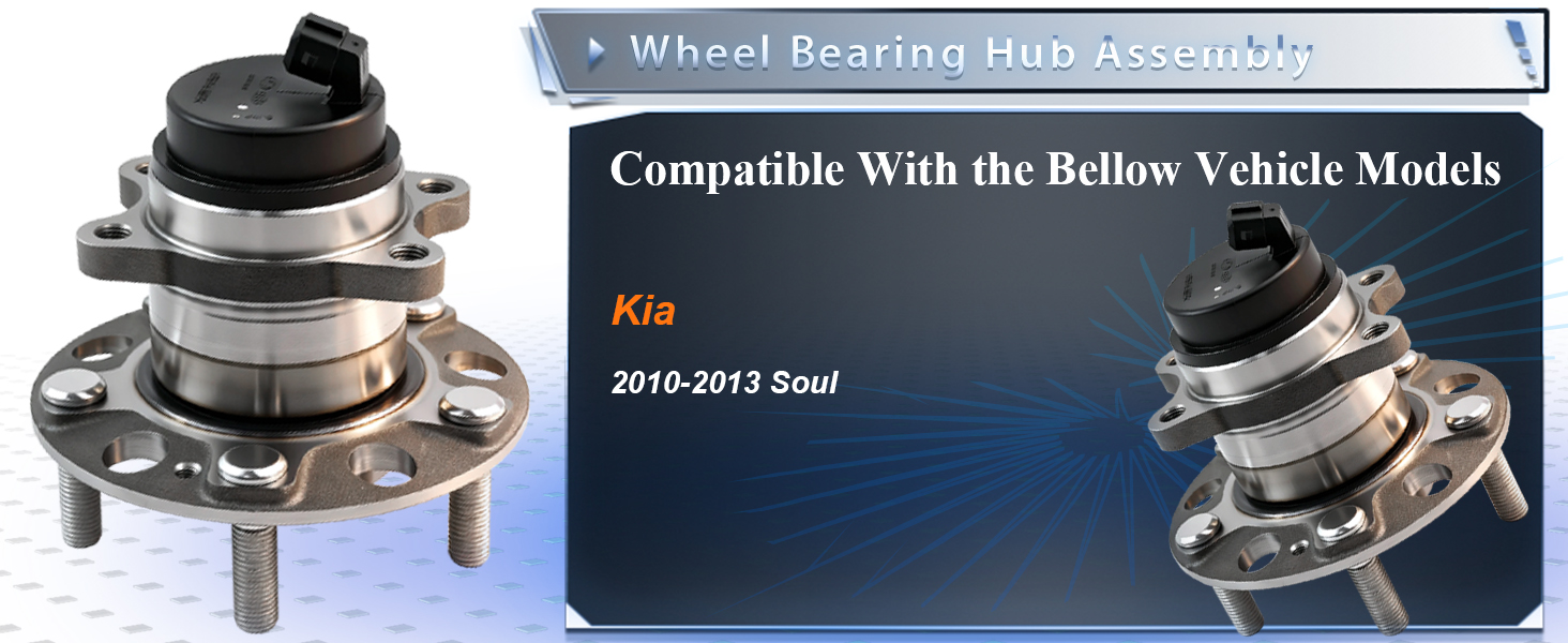 【Vehicle Fitment】This 2Pcs Rear Wheel Bearing and Hub Assembly Replacement for Kia SOUL 2010 2011 2012 2013.Once you've replaced this Wheel Bearing Hubs can fully support the weight of the vehicle and ensure the stability of the vehicle during driving, Please double check that the model is the same as your car before purchasing.