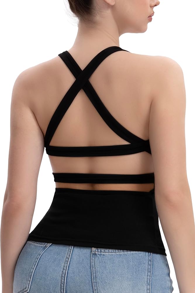 👙【Built-in Bra Support】Removable padding gives light lift and coverage. No more bra straps showing under racerback tops! Wear solo for date outfits or layer under blouses.
