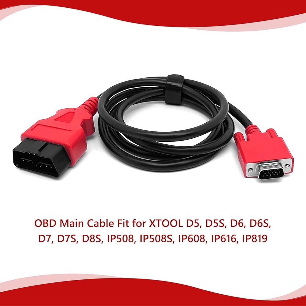 Main diagnostic cable fit for XTOOL D5, D5S, D6, D6S, D7, D7S, D8S, IP508, IP508S, IP608, IP616, IP819 DB15 OBD2 diagnostic scanner. Length: 5ft/150cm.