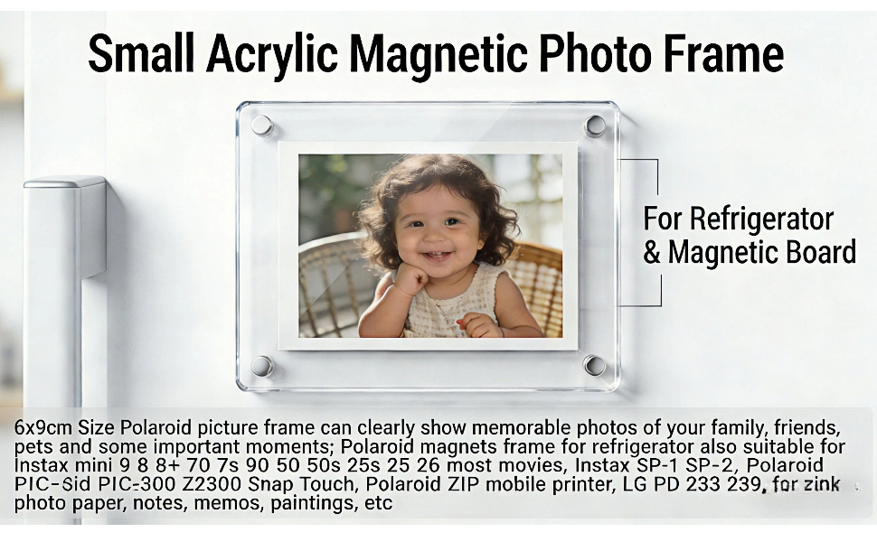 STRONG MAGNET:Built-in powerful magnets ensure firm grip on any metallic surface,no slipping or falling. Easy to swap photos anytime without tools - perfect for instant print films like Instax Mini