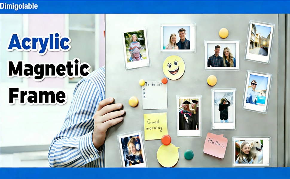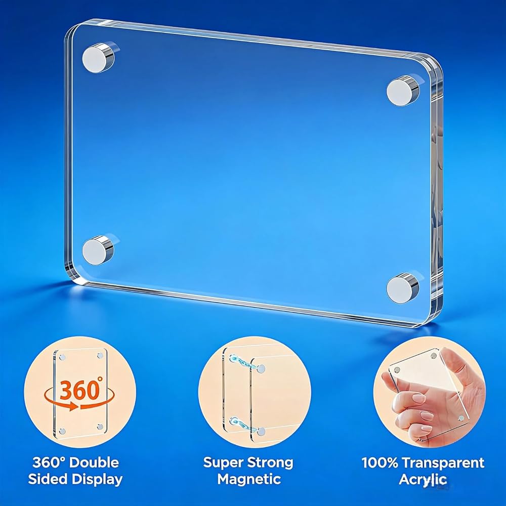 8 PACK VALUE SET:Get 8 premium acrylic magnetic frames in one set to showcase family photos,travel memories,small artwork or motivational quotes.Supports vertical and horizontal display on fridges, lockers, whiteboards and file cabinets
