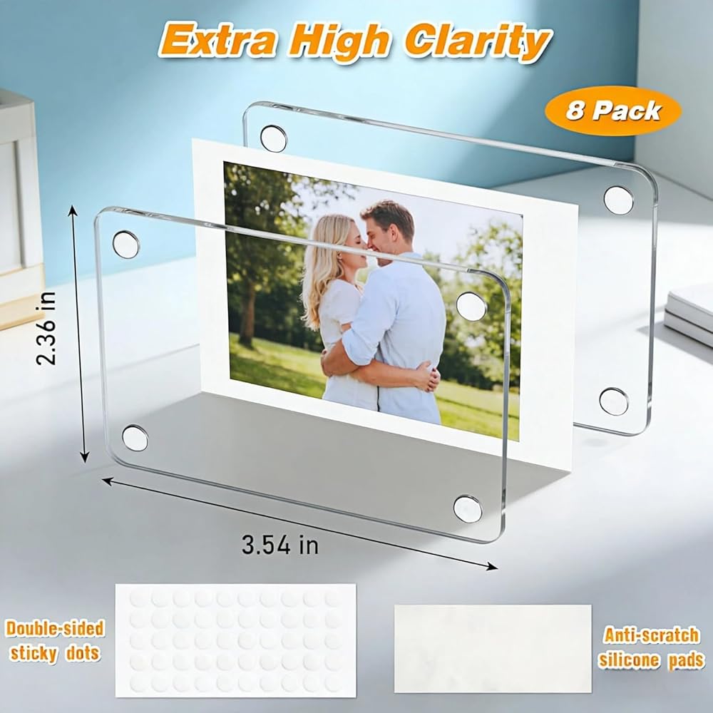 8 Pack Acrylic Magnetic Photo Frames for Fridge,2.36x3.54 Inch Double Sided Clear Mini Picture Frames,Perfect for Fujifilm Instax Mini & Polaroid Film,Refrigerator Magnet Photo Holders for Home Office