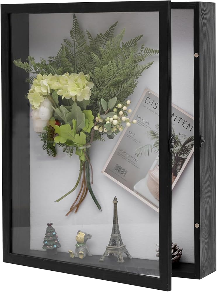 Clear, Safe & Shatterproof tempered glass - The 16x20" Pine shadow box frame uses high-quality tempered glass, which provides 99.9% UV protection to keep the memorabilia safe from sunlight. It also features anti-glare properties for clear visibility, even in bright light. Plus, the shatterproof design makes it safe for homes with kids