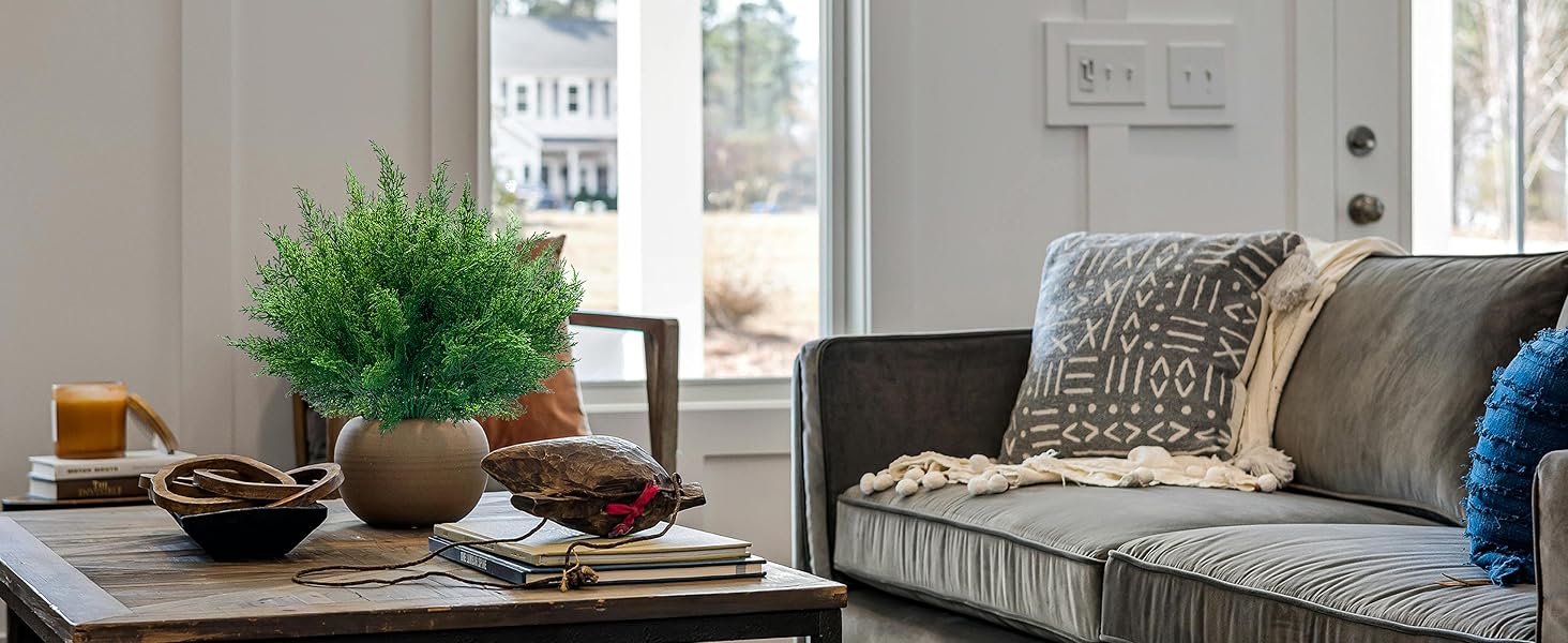 【📐Size】Each piece of artificial decorative plant is about 35.5cm/14", and has 5 adjustable stems with 5 blades attached to each. Artificial Greenery Plants can be adjusted to spread wider if you want.