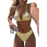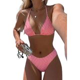 Top: Halter string triangle bikini top with adjustable tie at neck and back, removable push up padded bra for support and shape, make your chest look more upright. cute polka dots print makes it more flattering.