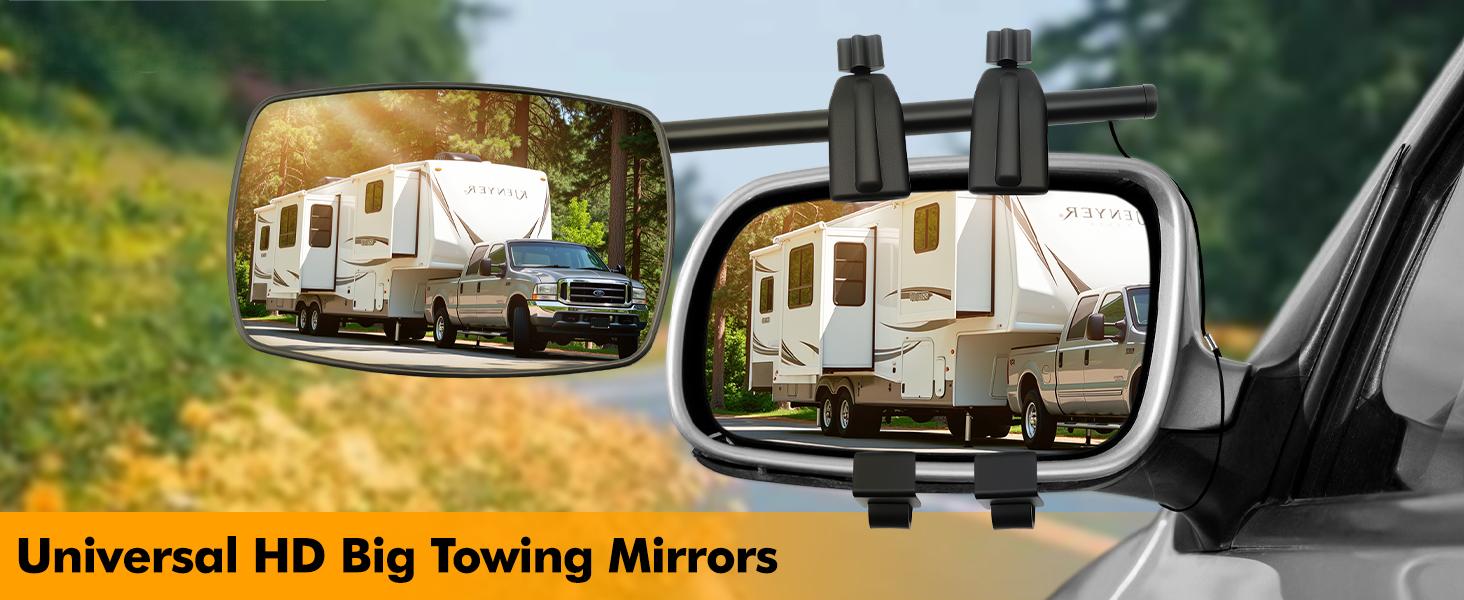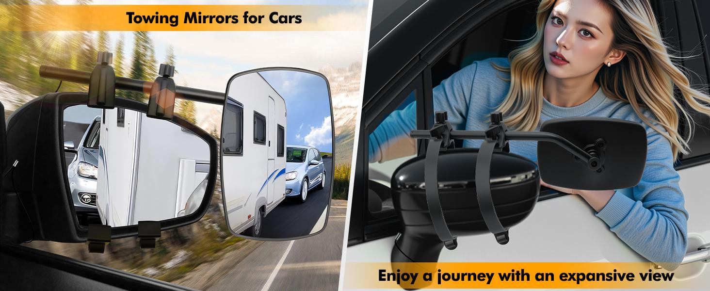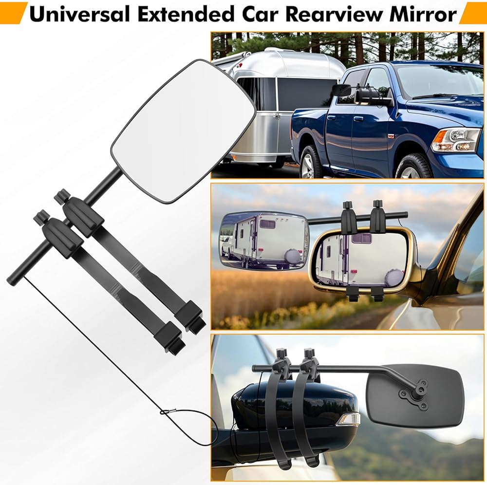SUITABLE FOR 99% OF VEHICLES: Our truck mirror extenders for towing are suitable for most vehicles such as trailers, RVs, caravan, trucks, SUVs, Jeeps etc. which provides convenience for drivers when parking, backing up, changing lanes, and is an ideal thoughtful gift for every driver.car mirror extender towing mirror extensions are the perfect addition to all your caravanning or camping trips. The Packaging includes: 2 x Caravan Mirrors for Cars.If you have any quality problems after receiving the clip on towing mirrors, feel free to send us messages if there is any questions, we are always serving for you