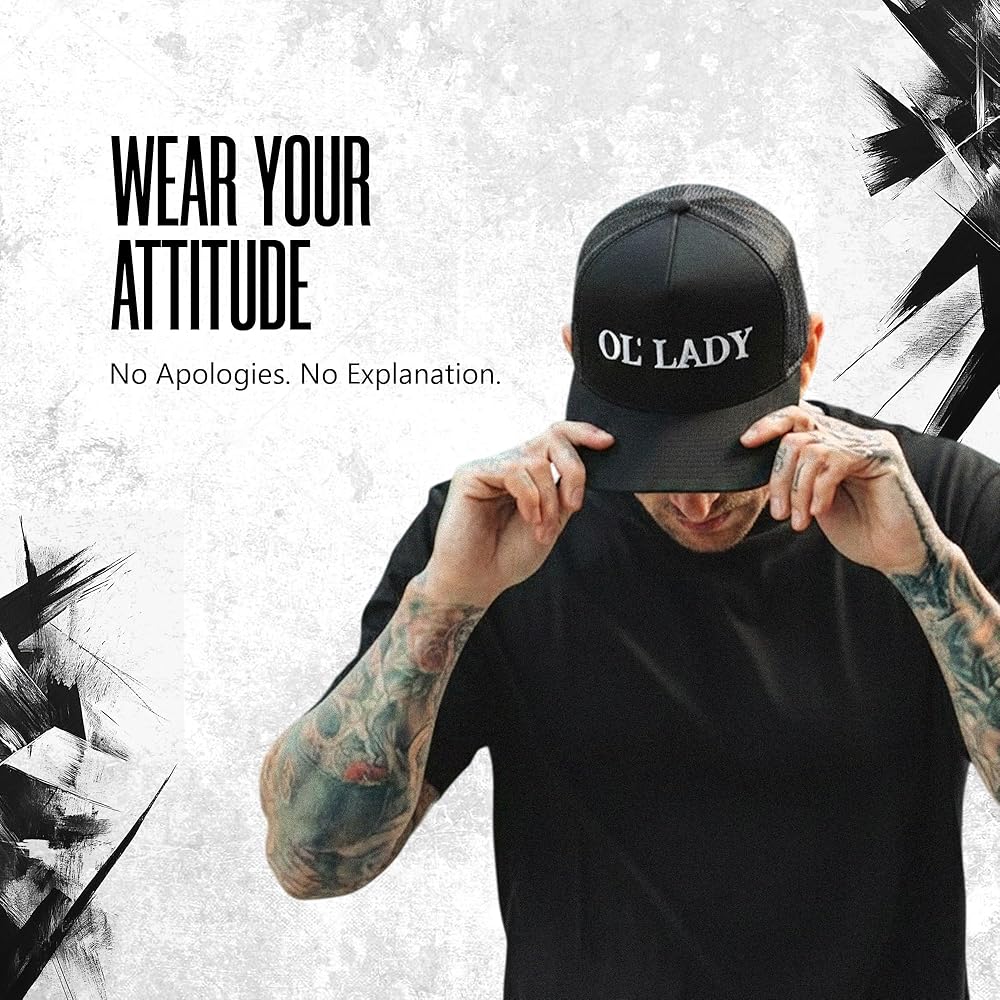 The Drive Clothing "OL' Lady Hat for Men & Women | Funny Offensive Fitted Baseball Cap | Structured Streetwear Hat | Bold Statement Urban Casual Headwear | Black