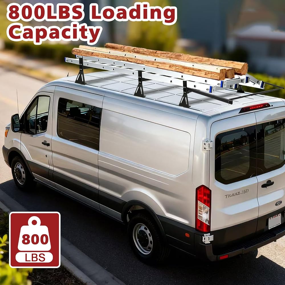 Robust Construction:Crafted with upgraded 2MM thickened metal pipes and connected by internal metal pipes, this roof rack boasts exceptional sturdiness. It's tightly connected, not prone to collapse, and can handle a remarkable 800LBS loading capacity, ideal for transporting heavy items like ladders, pipes, wood, and cargo boxes.