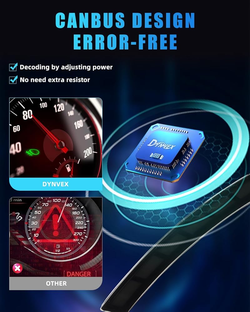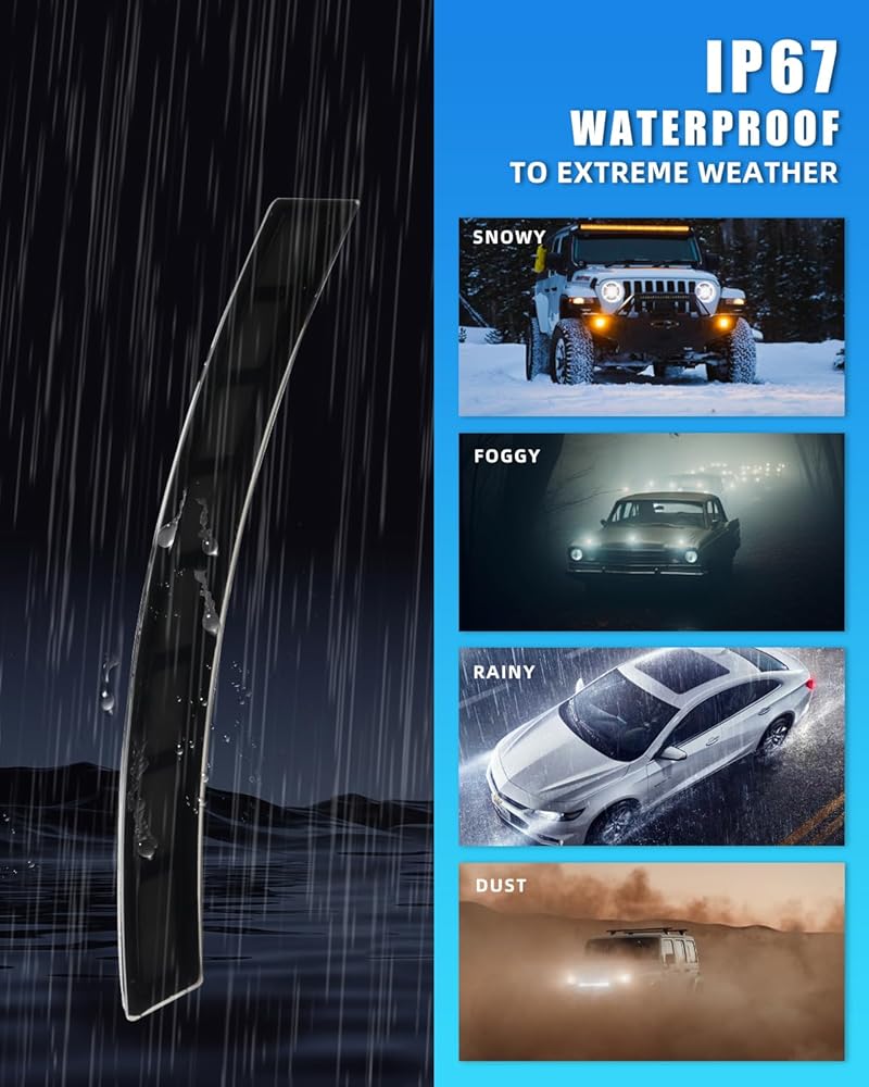 【Premium Material & Long-lasting Durability】DYNVEX lights feature a UV-protective coating and premium-grade materials for exceptional durability, resisting external impacts while safeguarding your vehicle's internal components. Built to withstand harsh weather conditions, they remain moisture-free on rainy, foggy, and snowy days. With an IP67 waterproof rating. The robust ABS plastic housing ensures long-lasting performance and maintains color integrity even under prolonged sun exposure.