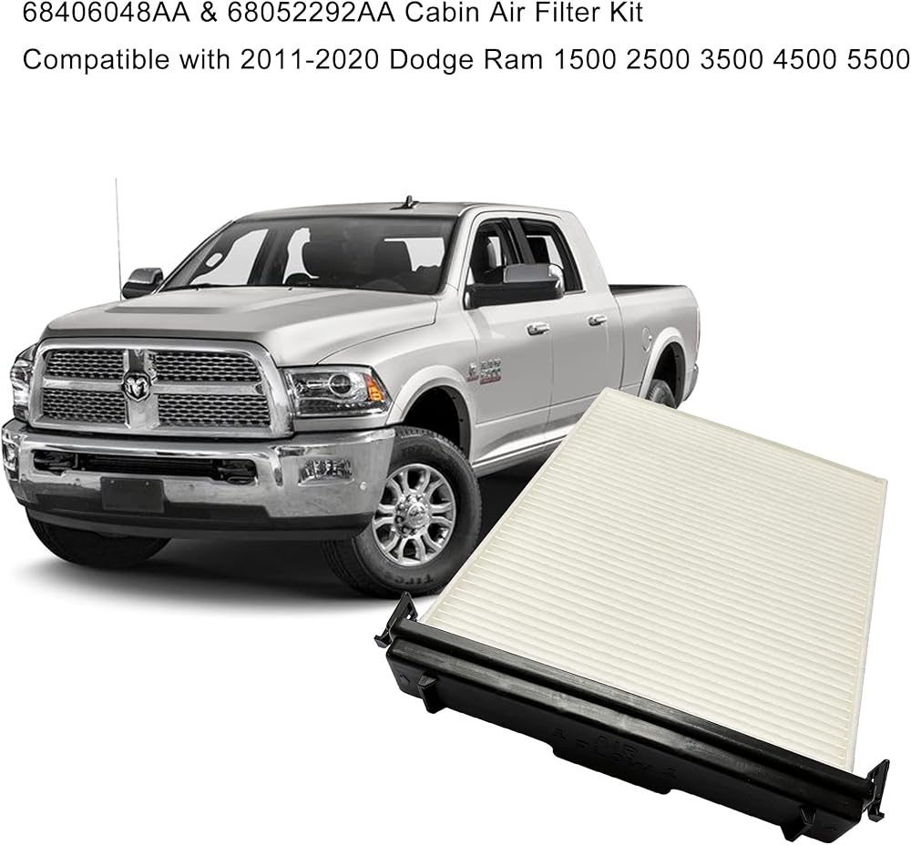 68406048AA & 68052292AA Cabin Air Filter and Air Filter Access Door Kit Replacement for 2011-2020 Ram 1500 2500 3500 4500 5500 2007-2012 CX-7 2.3L L4 Replaces 5058693AA 68318365AA
