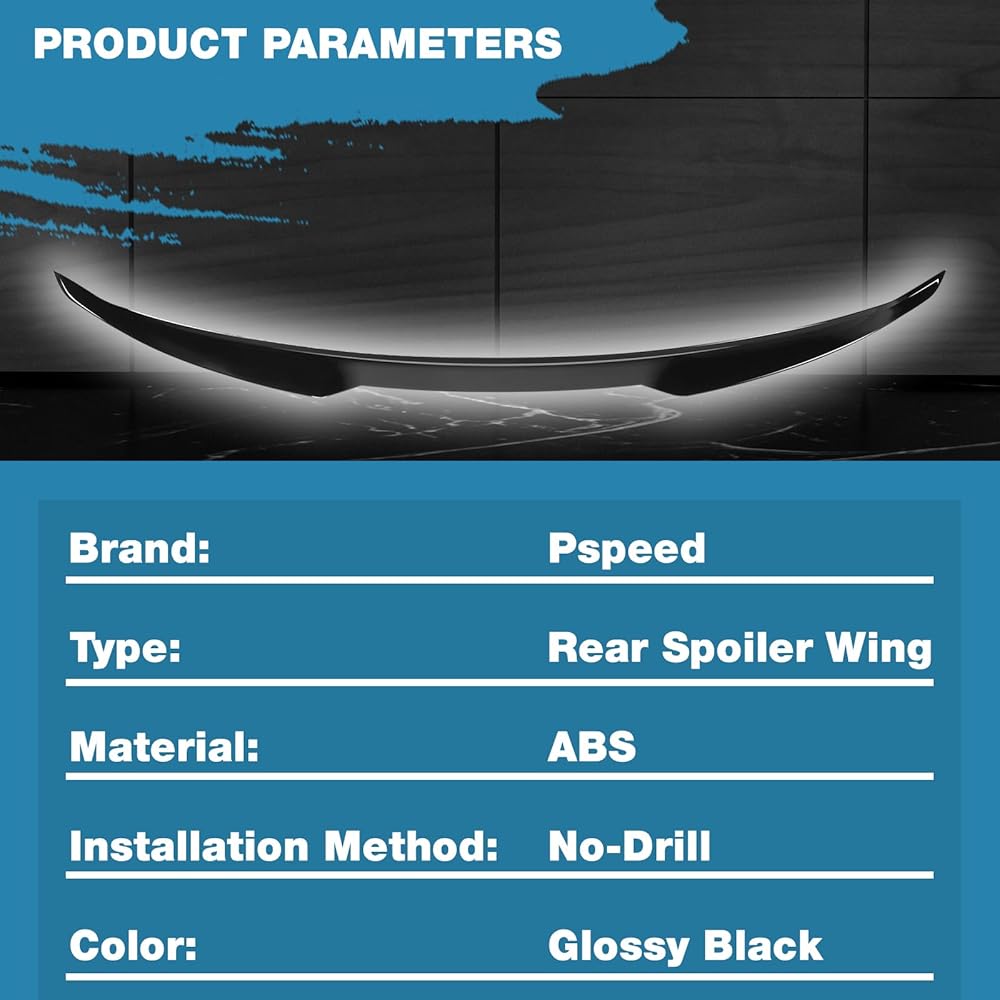 Premium Durability: Pspeed Crafted from high-grade ABS plastic or lightweight carbon fiber, this spoiler withstands harsh weather and UV exposure, maintaining its original appearance for years. Its lightweight, streamlined design ensures low noise levels, while the robust construction delivers lasting durability