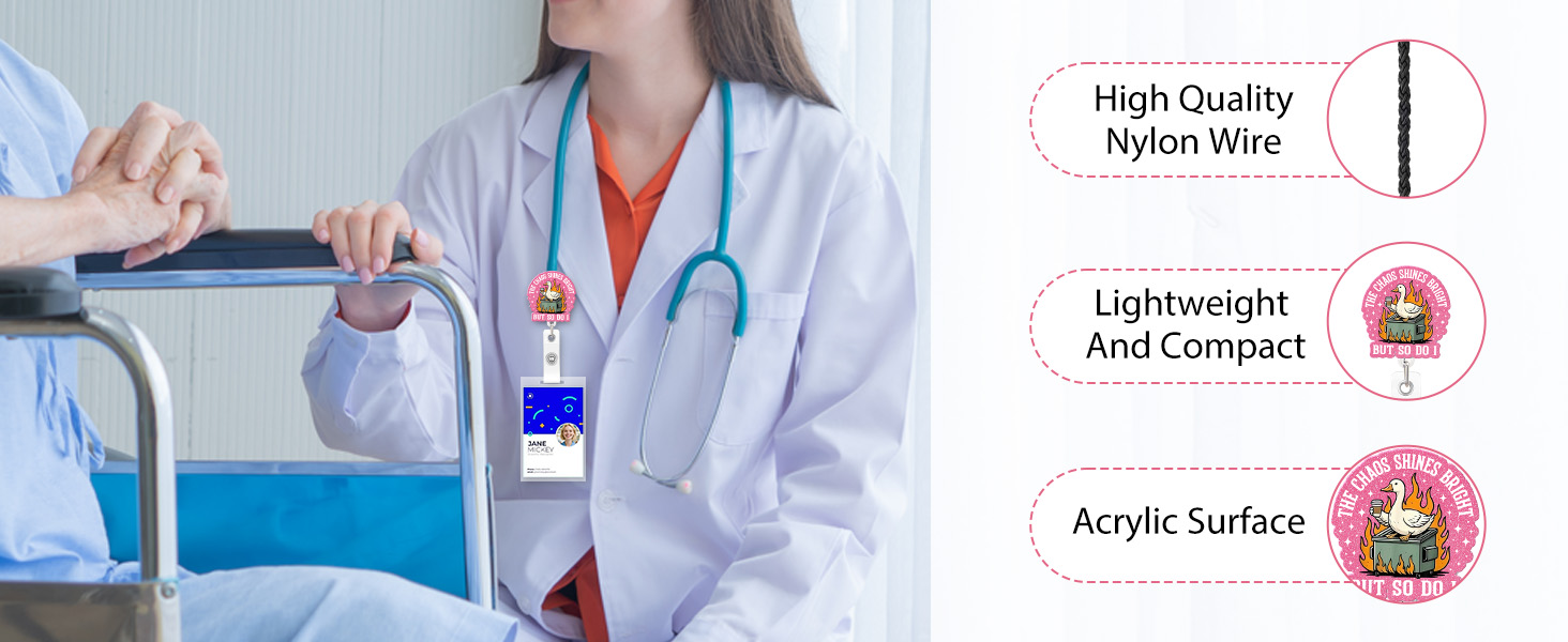 Smooth Retraction Mechanism: Designed for efficiency, this badge holder comes with a smooth retractable cord reaching 24 inches. Easily swipe your ID or unlock med rooms without hassle. Our retractable badge holders are tested for durability to withstand the demands of healthcare work.