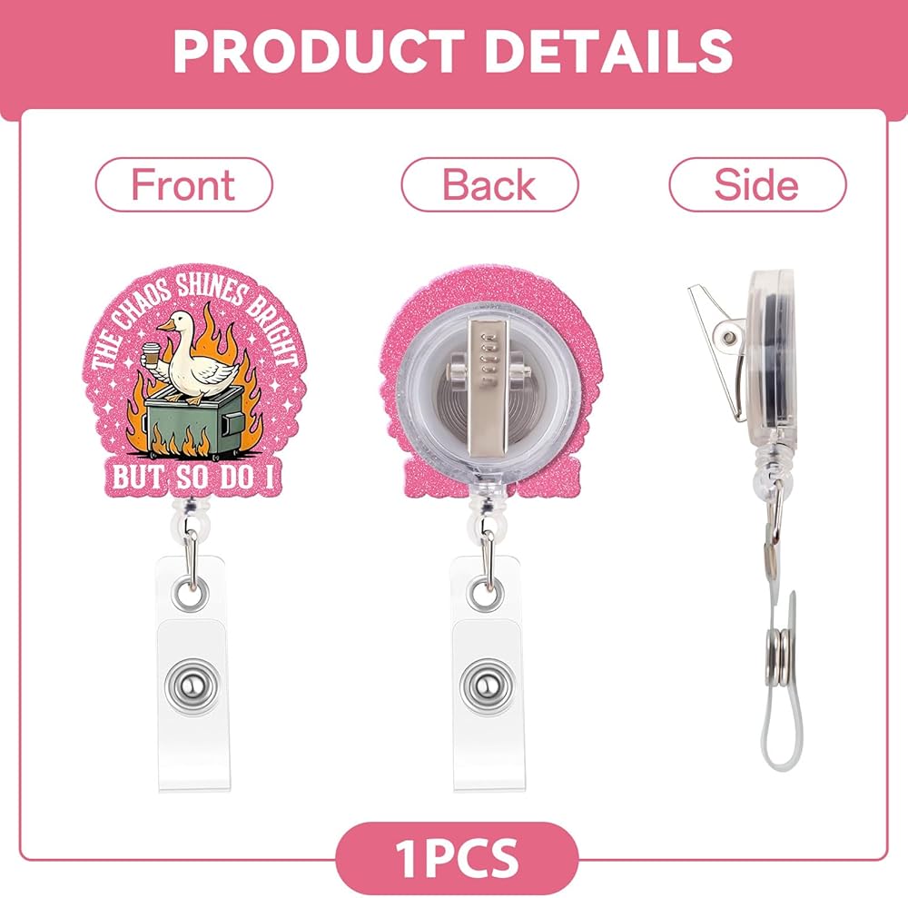 Funny Goose Nurse Badge Reel, The Chaos Shines Bright Dumpster Fire Badge Holder with Retractable Clip, Cute Gifts for Nursing Student RN LPN CNA MA Medical Worker Teacher Doctor