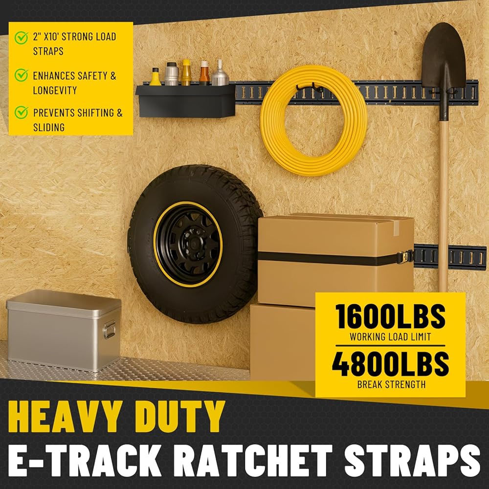UNIVERSAL E-TRACK COMPATIBILITY: Fits all standard E-Track rails and accessories. Easily attach straps, hooks, rope tie-offs, baskets, and other cargo-management tools. Ideal for box trucks, enclosed trailers, cargo vans, flatbeds, and garage storage systems.