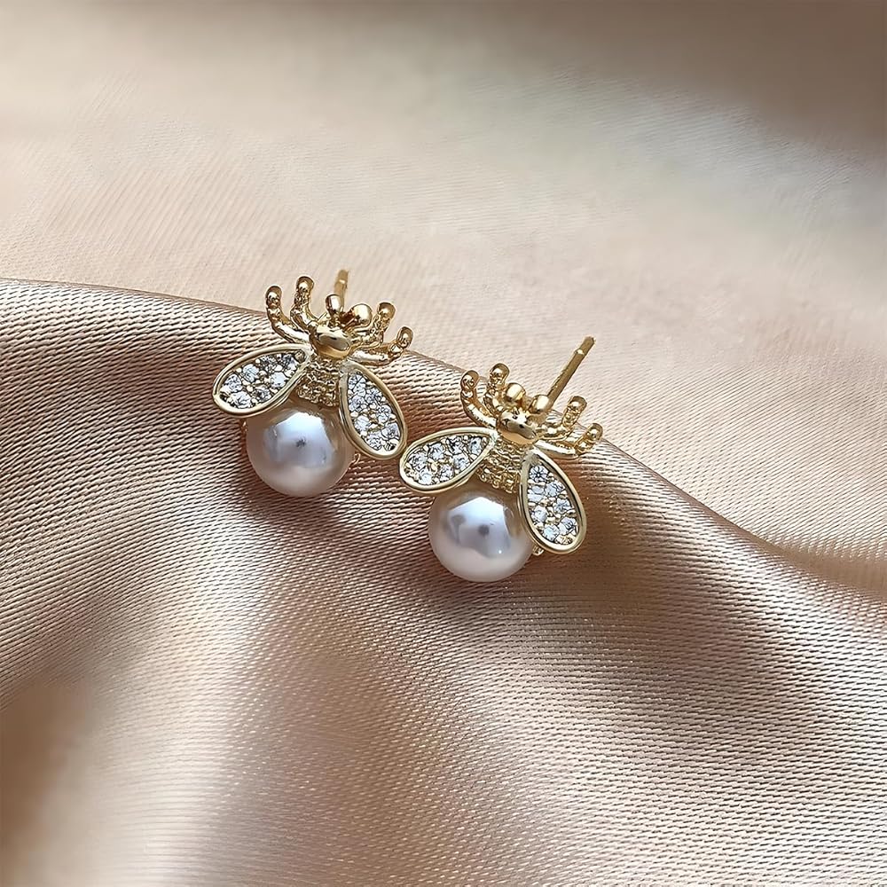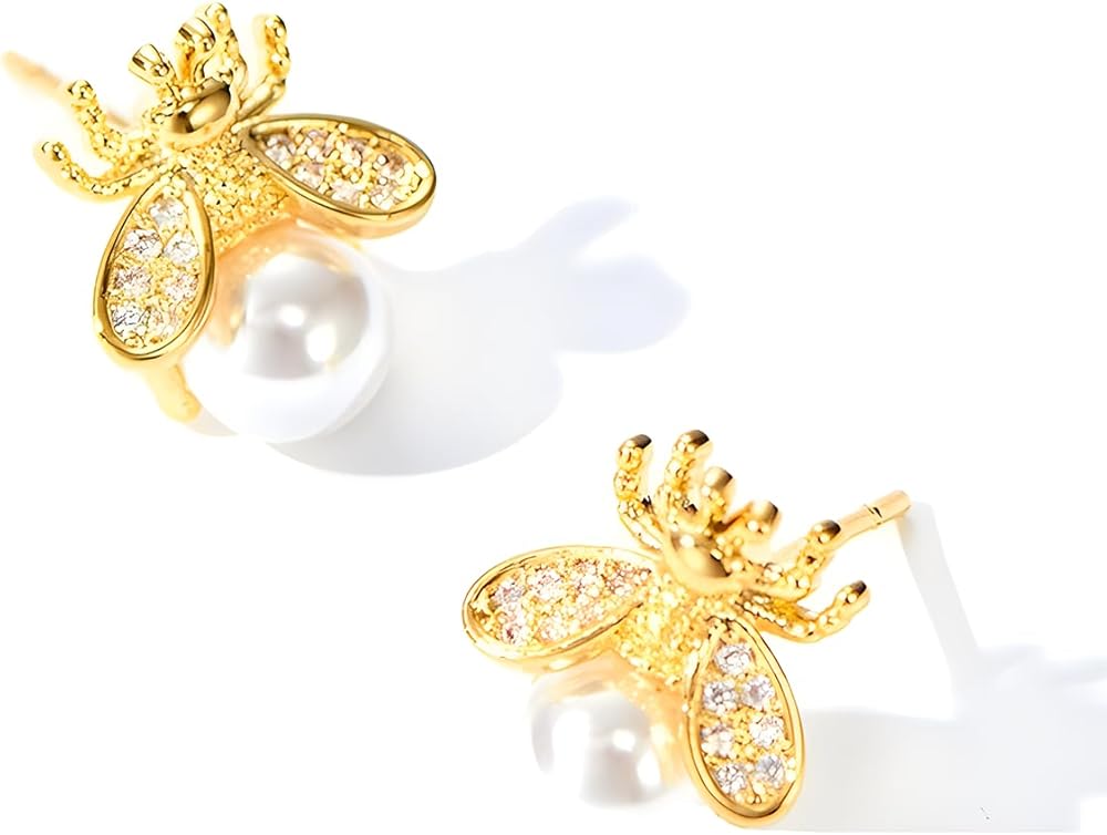 Size: Bee crystal pearl stud earrings size: 12X10mm. The weigh is 3g /pair. Unique small honeybee bee earrings is very eye-catching, shows your fashion and unique taste!