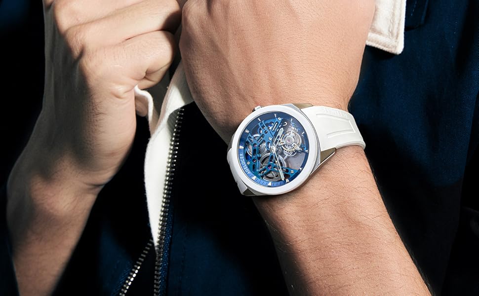 Striking Skeleton Dial & Durability⌚Enjoy the double-sided transparent hollow design, revealing the intricate 25 ruby-bearing movement. The scratch-resistant sapphire crystal and 316L stainless steel case offer long-lasting elegance.