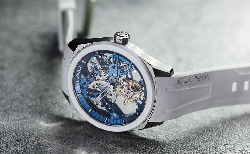 Precision Engineering with Flying Tourbillon⌚The AGELOCER men's watch 9101K10 features a suspension-free flying tourbillon and 360° rotating escapement, counteracting gravity for enhanced accuracy. The self-developed manual movement ensures reliable timekeeping.