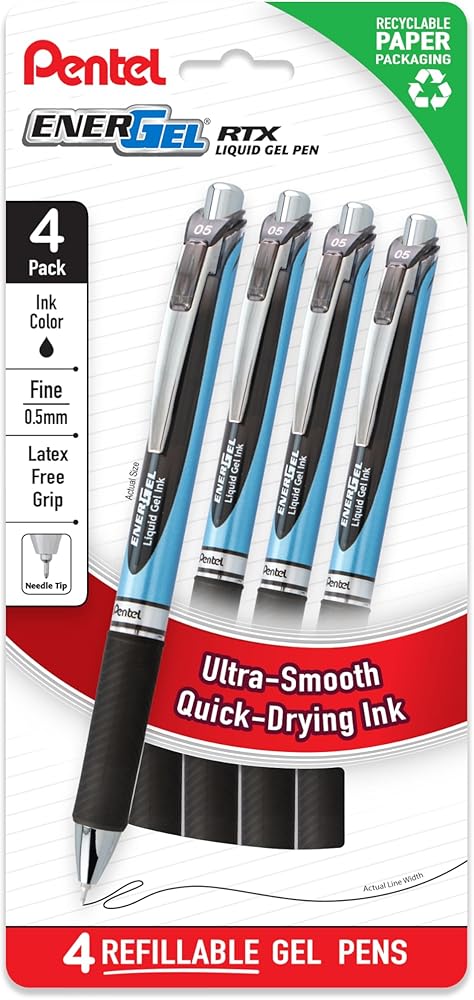 The EnerGel® RTX features stainless steel accents for a professional look. Ideal for anyone looking for a smooth, effortless writing experience. High performance ink technology combines the best qualities of liquid and gel ink. Fast-drying liquid gel ink is great for left handers - no smears, no smudges, no globs. The latex-free grip provides extended comfort and control when writing. Available with a 0.5mm needle tip A/B/C and 0.7mm needle tip A/B/C/D/V, it is refillable with any size/color EnerGel ink. It is backed by a Limited Lifetime Warranty.