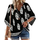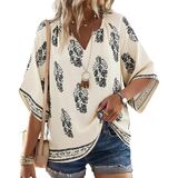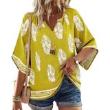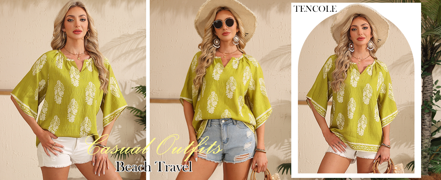 Boho Floral Print Tops: Adorned in vibrant paisley patterns, this flowy top captures that free-spirited boho energy you love. The bold, bright colors ensure this piece stands out in your rotation of chic peasat blouses, while the breezy half-sleeve cut adds to the effortless, floaty feel. Made from a linen-like fabric that's breathable, lightweight, and incredibly soft, bohemian tops keeps you cool when the temperature rises.