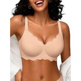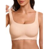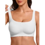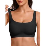 【Ultra-Soft & Comfortable Fabric】 Made of 55% nylon and 45% spandex, this wireless, seamless bra adopts new high-tech stretchy fabric, offering a lightweight, cloud-like feel. The non-removable pads come with breathable holes for moisture-wicking and quick-drying. Its buttery smooth texture ensures all-day zero pressure, keeping you dry and comfortable