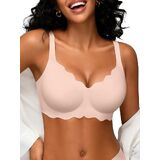 【Scalloped V-Neck Bralette 】 The stylish V-neck design accentuates a charming cleavage, highlighting the attractive curves of the bust. Its seamless transition minimizes undergarment lines under outerwear. The scalloped edge at the hem gently smooths the abdomen and refines contours, letting women of all ages exude confidence