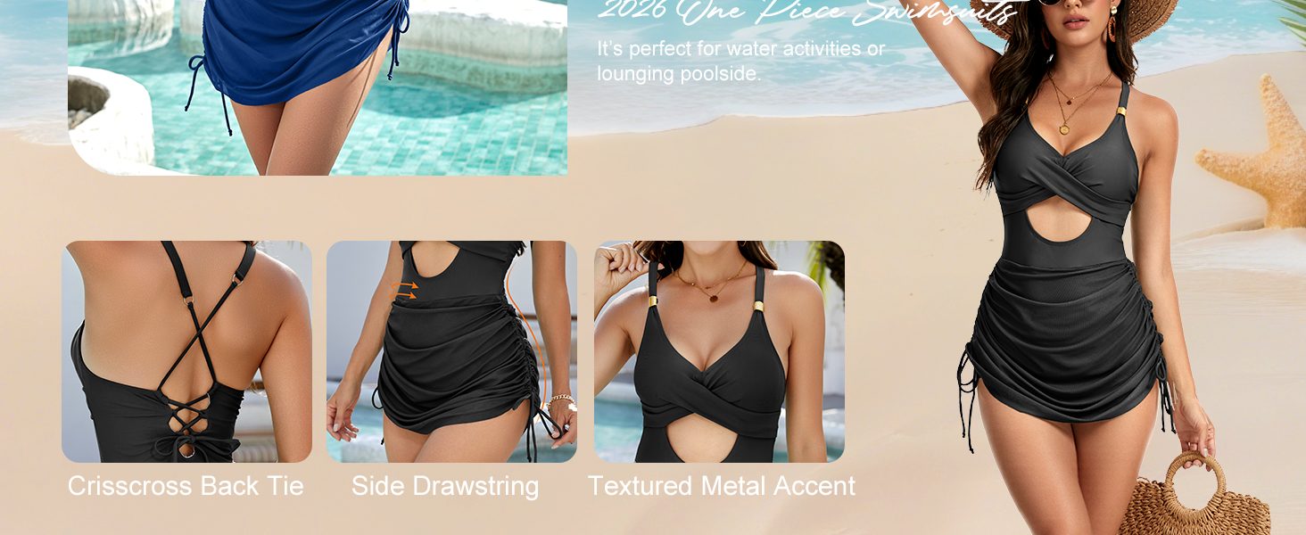 Unique Design: The V-neck and cutout detail add just enough shape without being too revealing, and the criss-cross tie in the back makes it easy to adjust for a better fit,add a tou ch of fashionable summer charm to this classic swimsuit.