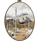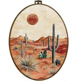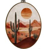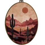 dvhdajed Western Desert Landscape Oval Wall Art Decor, Southwestern Cactus Desert Framed Canvas Art, Vintage Boho Western Oval Wall Hanging Decor for Living Room, Deserts Decorations, 8.7x11.3 Inch