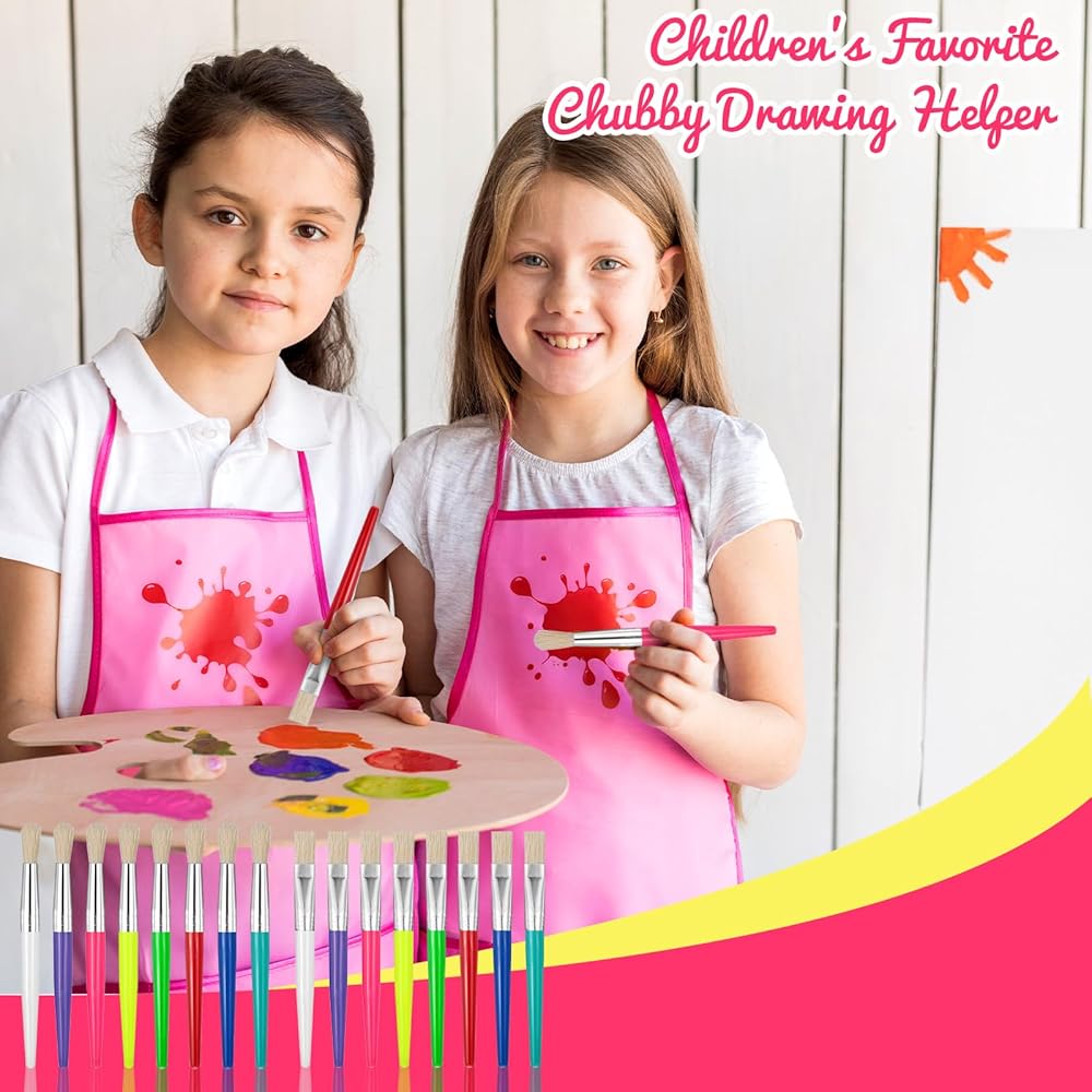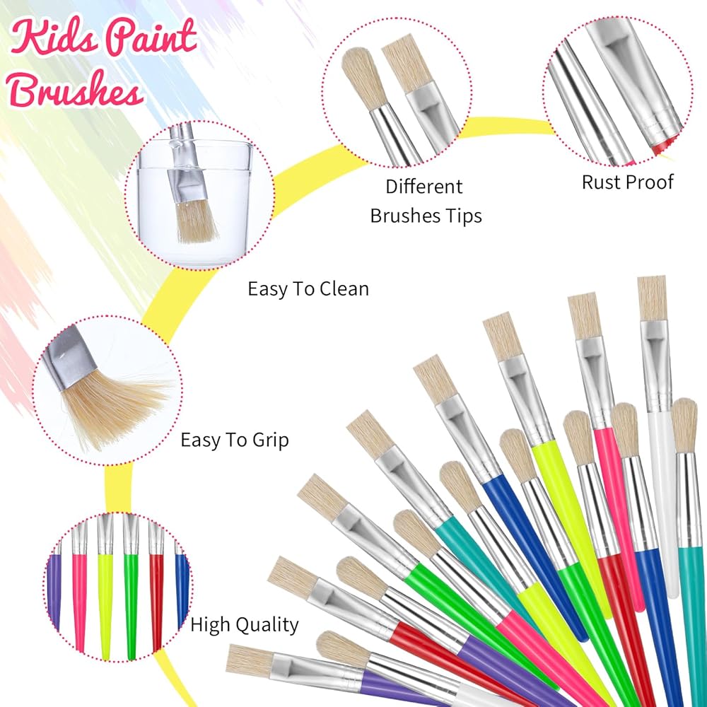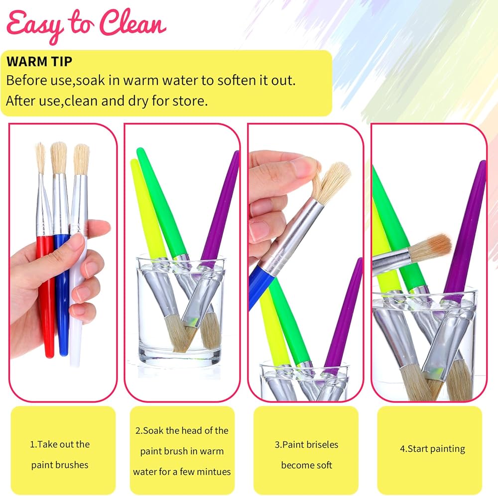 the paint brushes for kids are composed of soft bristles, bright handles and metal ferrule, safe, reliable and serviceable, reassuring for kids and adults to use, and the bristles are not easy to fall of.