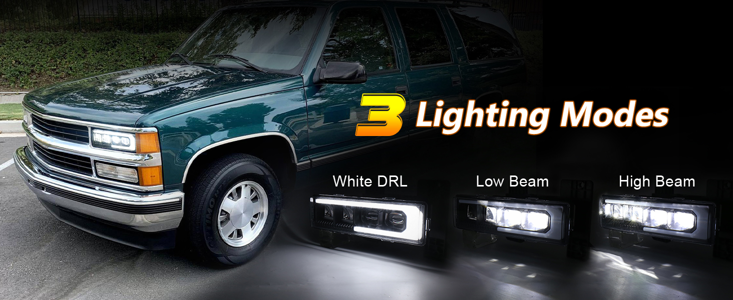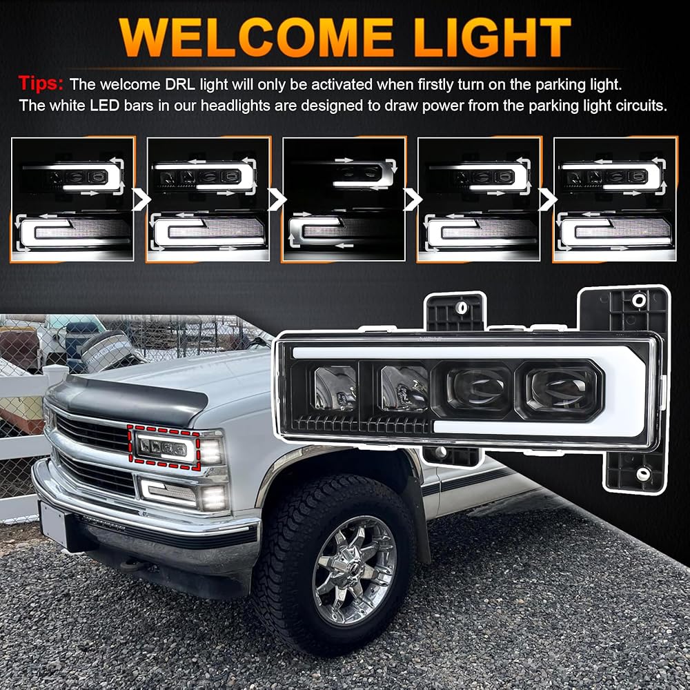 LED Headlight Assembly High/Low Beam & White DRL with Welcome Sequence Left Driver Side Compatible with 1988-1998 Chevy GMC C/K1500 C/K2500 C/K3500 Suburban Tahoe Yukon