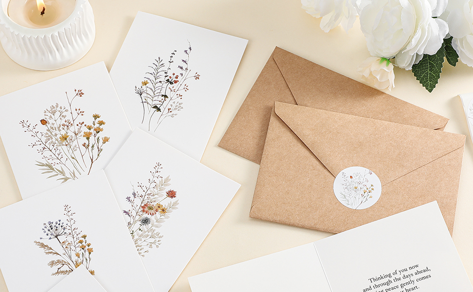 High-Quality Stock & Kraft Water-Gum Envelopes: Printed on 110lb cardstock smooth to write on with any pen. The set includes 20 kraft envelopes with water-activated gum, providing a secure, classic way to seal and mail each card