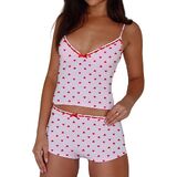 Style: Y2k 2 piece pajamas set, cute lace trim pjs, valentines day pajama set for women, deep v neck cami tops, bow front decor, fitted mini shorts, bow patchwork on the waist, summer two-piece shorts set, cute heart lounge sets sleepwear, sexy nightwear lingerie set