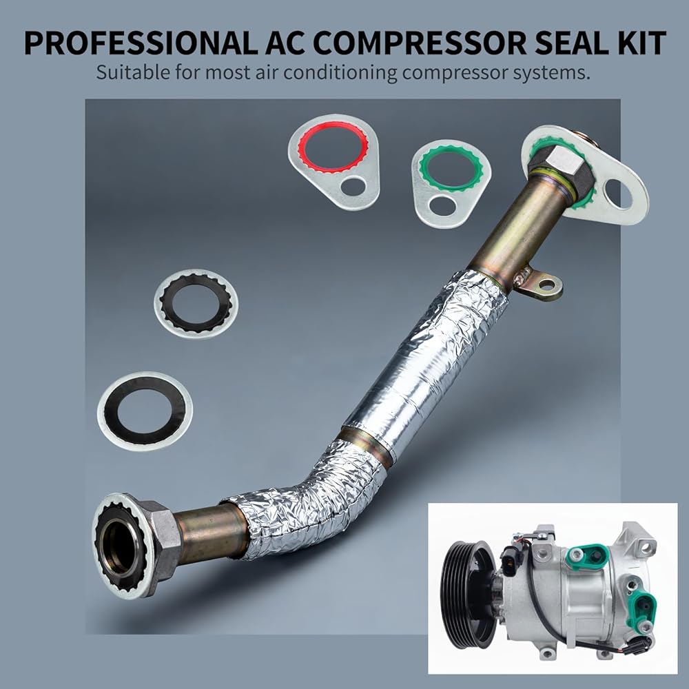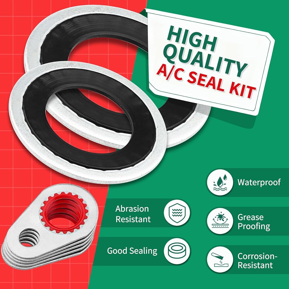 Durable AC Seal Kit: Air conditioning seal gasket is made of high quality stainless steel and rubber, with a smooth surface free of burrs, wear-resistant, heat-resistant and not easy to rust, it boasts unparalleled durability and a longer service life, ensuring long-lasting performance. Ideal o rings seal kit for repairing automobile air conditioning compressor.
