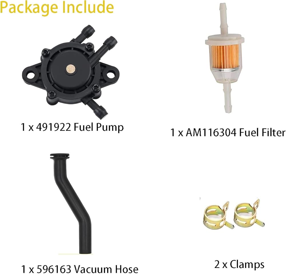 808656 491922 Fuel Pump for B&S Lawn Mower Tractor Gas Fuel Pump & 596163 Vacuum Hose with AM116304 Fuel Filter for Hon&da Yamaha 691034 692313 808492 J&D Koh&ler 17HP-25 HP Small Engine
