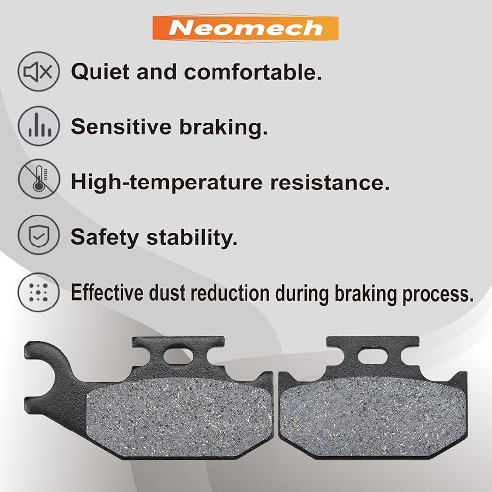 Premium Advanced Materials: The friction material of the brake pad is semi-metal and non-asbestos, containing brass. The backplane is made of stainless steel, and the outer layer is wrapped with a corrosion-resistant black surface spray paint coating