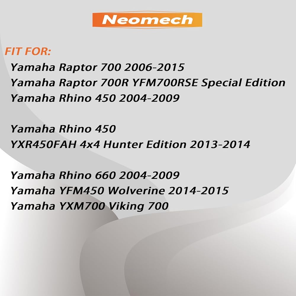 Fit for: for Yamaha Raptor 700 2006-2015; Yamaha Raptor 700R YFM700RSE Special Edition; Yamaha Rhino 450 2004-2009; Yamaha Rhino 450 YXR450FAH 4x4 Hunter Edition 2013-2014