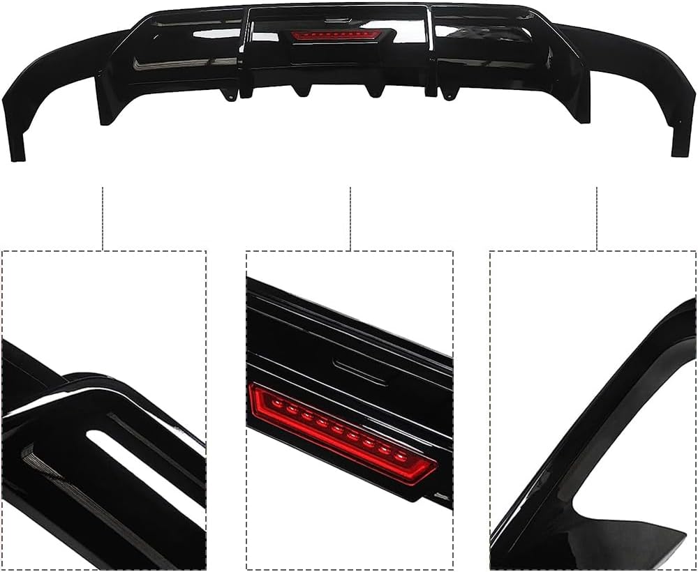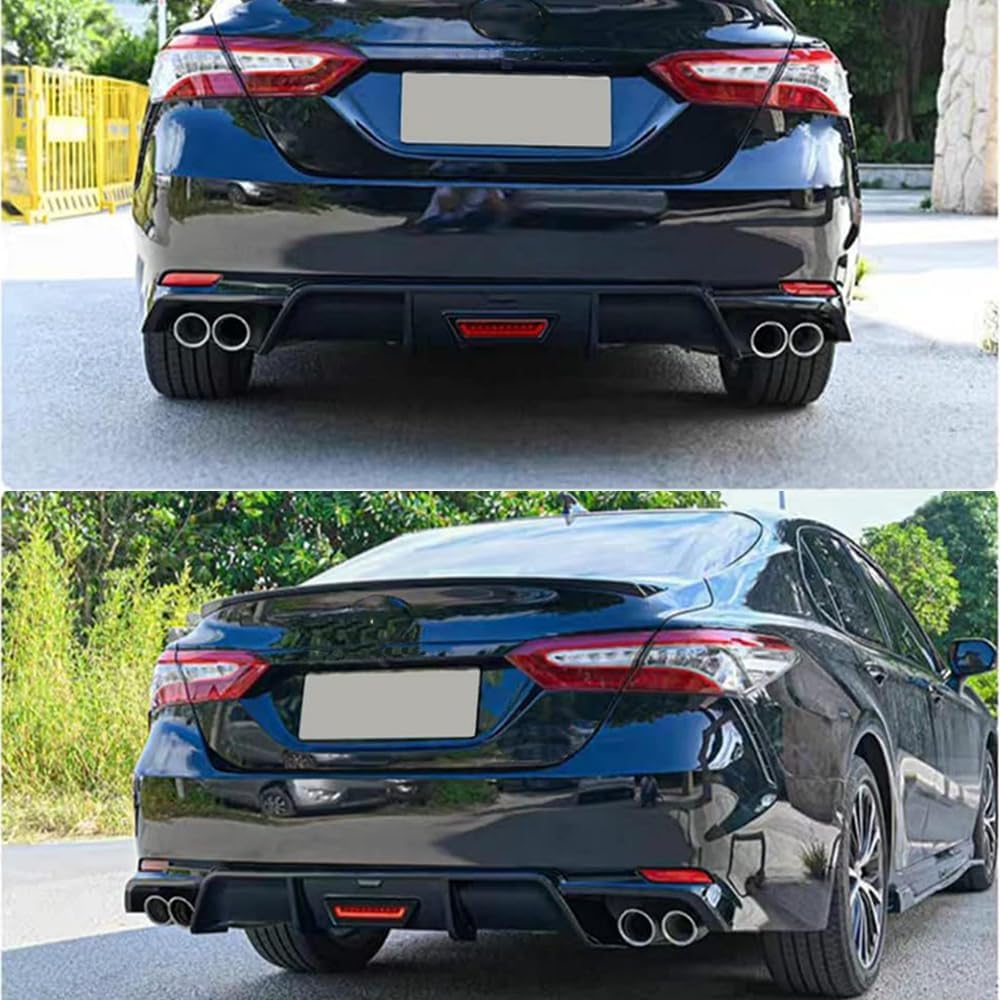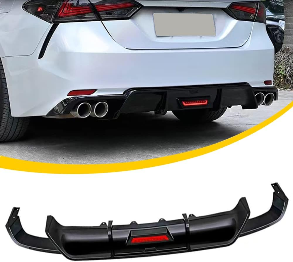 Rear Lip Bumper Diffuser Compatible with Toyota Camry 2018-2022 SE XSE Rear Body Splitter Valance w/LED Light Sports Style 3PCS (Glossy Black)
