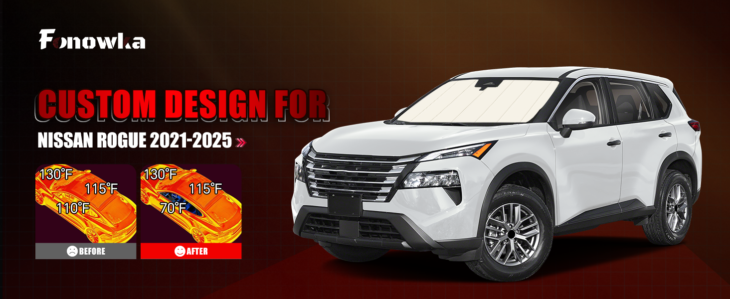 Vehicle Specific:Fonowka windshield sunshade custom fit for Nissan Rogue 2021-2025 2026, The design is precise no gap, provide 100% perfect coverage which, provides maximum coverage.
