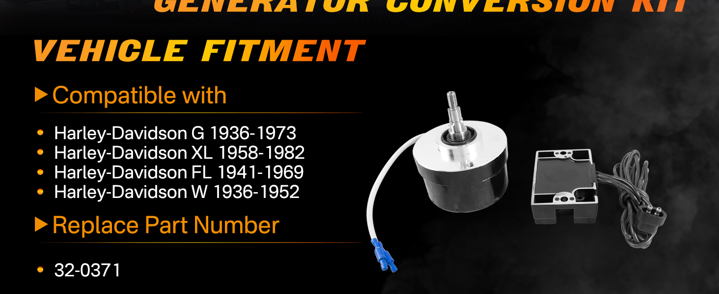 Compatible with: This alternator generator conversion kit is compatible with Harley-Davidson 1936-1973 G 1958-1982 XL 1941-1969 FL 1936-1952 W Replace Part Number: 32-0371