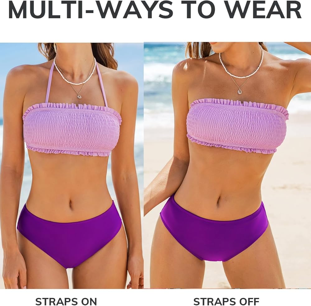 Design: This Women Bikini Sets Floral Swimsuit Features Bandeau(with Removable Shoulder Straps) and Back Tie Design, with Mid Rise Bottom