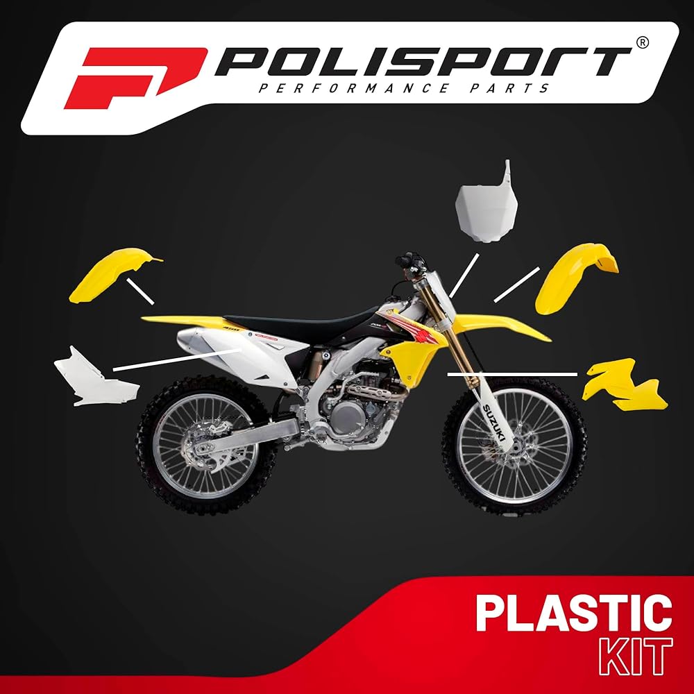Polisport Motocross (MX) Replica Plastic Kit for Suzuki RMZ 450 (2005-06) Dirt Bike – OEM Quality, Durable, Flexible & Perfect Fit – Yellow/White