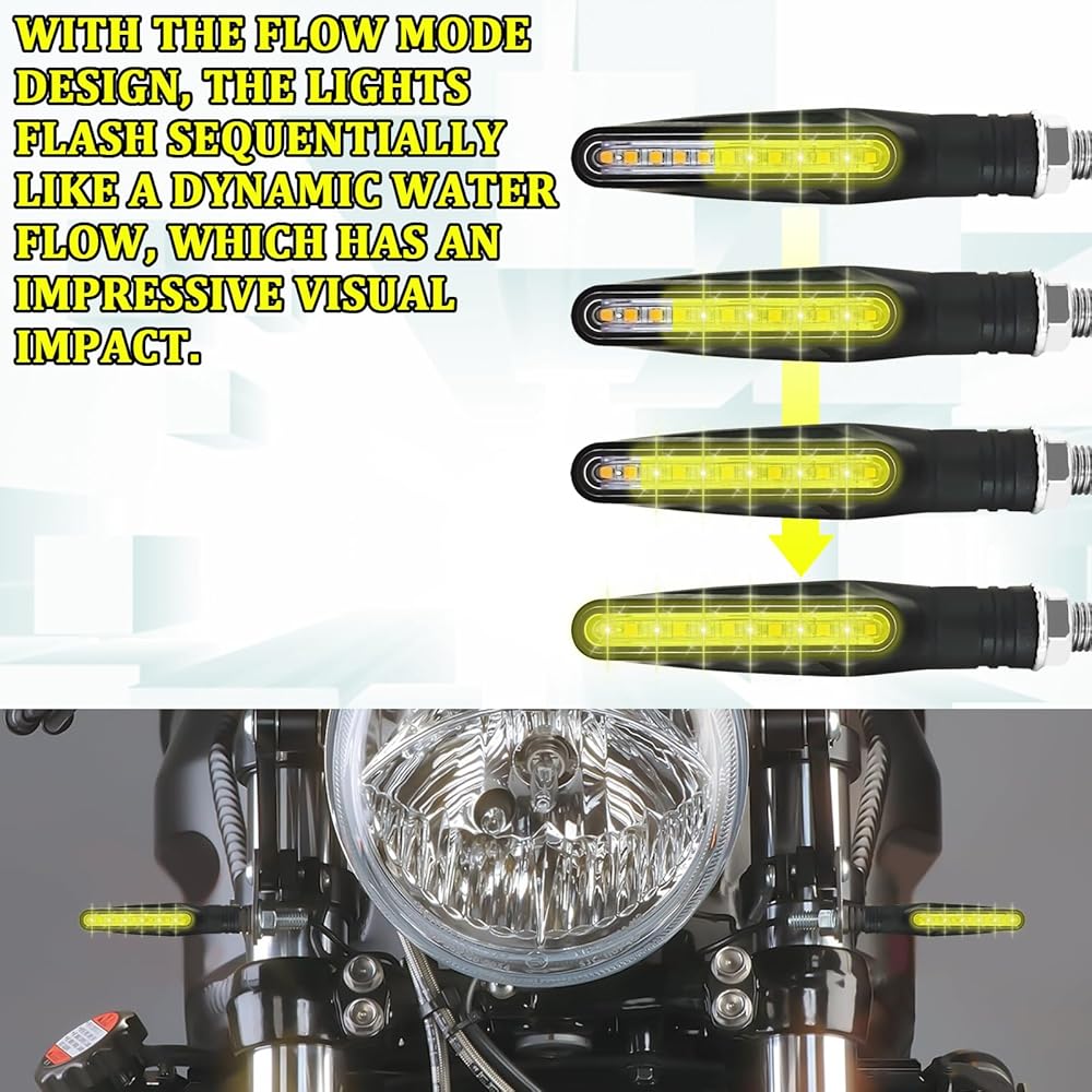 4PCS Motorcycle Turn Signals, Ultra-Bright 12V Front & Rear LED Turn Signal Bulb, Upgraded Sequential Flow Blinkers Indicator LED Lights for Tail Light, Daytime Running and Brake Light